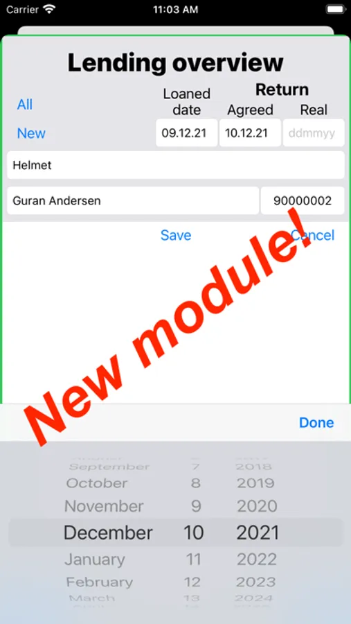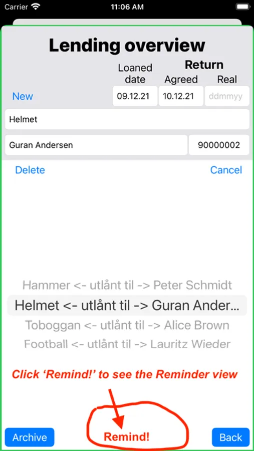 - Use the 'Loan module' to know who has borrowed stuff from you. (Click 'Loan')
