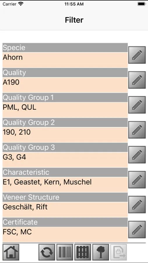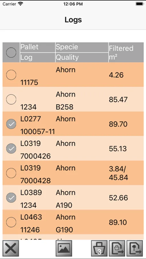 A Veneer warehouse Management information App. The inventory can be synchronised with the images attached to the veneer. Filter functions are available to search for specific data with the ability to filter for species, length, width, with/without pictures and multiple qualities. With an integrated share feature for tallies and pictures.