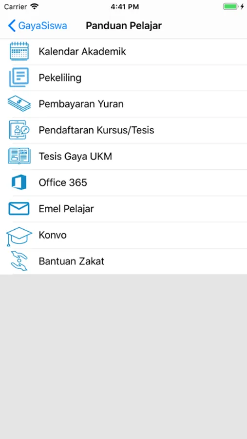 Aplikasi Mobile GayaSiswa UKM dibangunkan khas untuk pelajar UKM bagi memudahkan mereka menyemak maklumat biodata, kolej kediaman, penaja, akademik, kursus yang didaftar, jadual kuliah dan jadual peperiksaan terkini, berita kampus, kewangan pelajar, aktiviti dan perkhidmatan yang berkaitan, nombor kecemasan agensi yang berdekatan serta pelbagai panduan untuk pelajar.