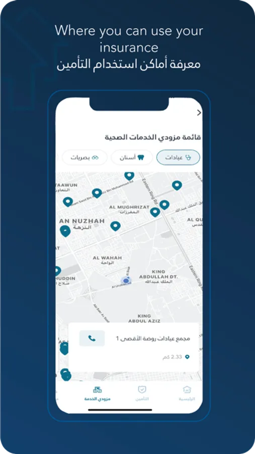 • معرفة أقرب مقدم خدمات صحية و تعليمات الوصول اليها.