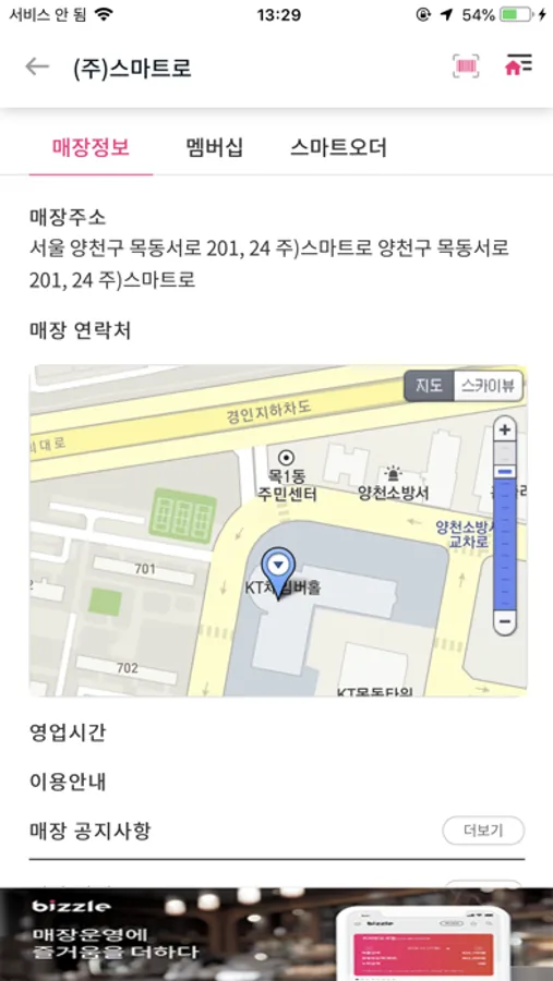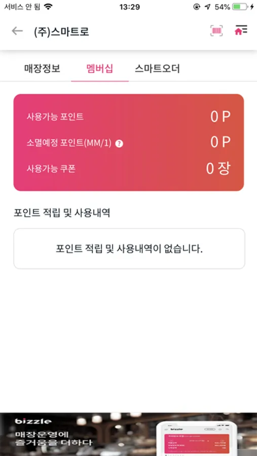 본 서비스는 (줏)스마트로에서 제공하는 비즐샵 서비스에 가입한 매장에 한해서