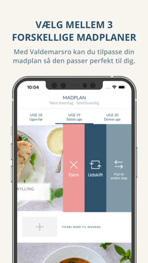 • Ugentlige madplan hvor du nemt kan udskifte, fjerne eller tilføje opskrifter og du kan justere madplanen til, så den bliver helt unik og passer perfekt til dit behov. Vælg frit hvilken af de 3 ugentlige madplaner du vil følge, blandt andet er der fx både en madplan til børnefamilier og en vegetarmadplan. Uanset hvilken madplan du vælger, så kan du nemt og hurtigt tilpasse den perfekt til dig og dine behov.