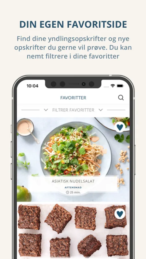 • Din egen personlige favoritside, hvor du kan gemme dine yndlingsopskrifter og opskrifter du gerne vil prøve. Du kan nemt filtrere i dine favorit opskrifter.
