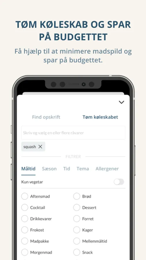 • Filtrering af opskrifter efter allergener, som fx gluten, laktose, nødder mv