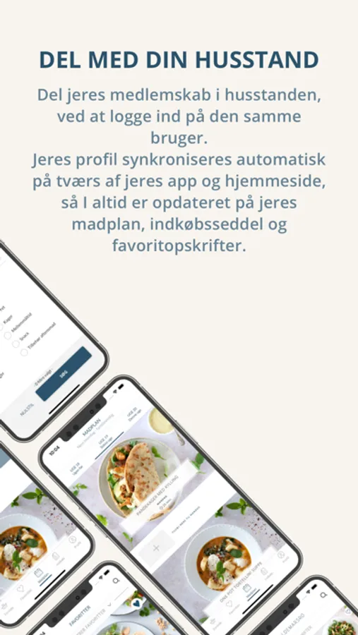 • Du kan dele dit medlemskab med din husstand, så jeres madplan og indkøbsseddel automatisk opdateres mellem jer.