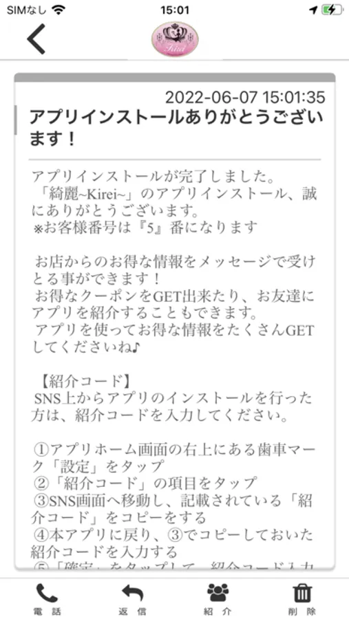 KireiのアプリをSNSを通じてお友達に紹介する事ができます。