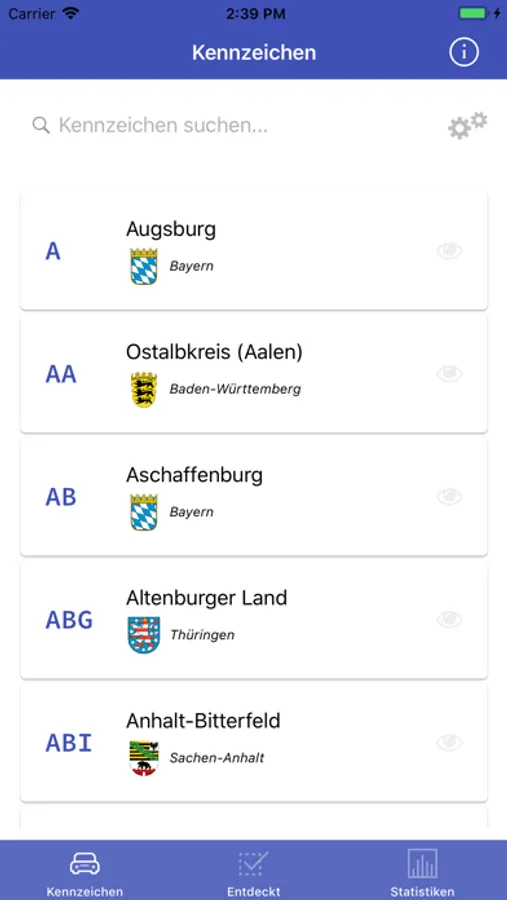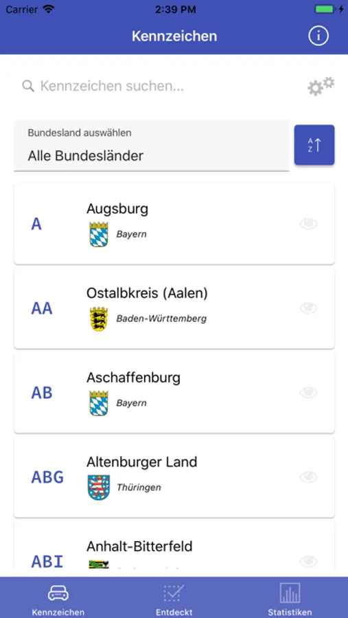 Die App 'Kennzeichen' hilft Ihnen bei der Beantwortung dieser Frage, denn hier werden übersichtlich alle Kennzeichen Deutschlands dargestellt. Ebenso können Sie bereits entdeckte Kennzeichen bequem markieren und sich so ihr persönliches Kennzeichen-Sammelalbum erstellen.