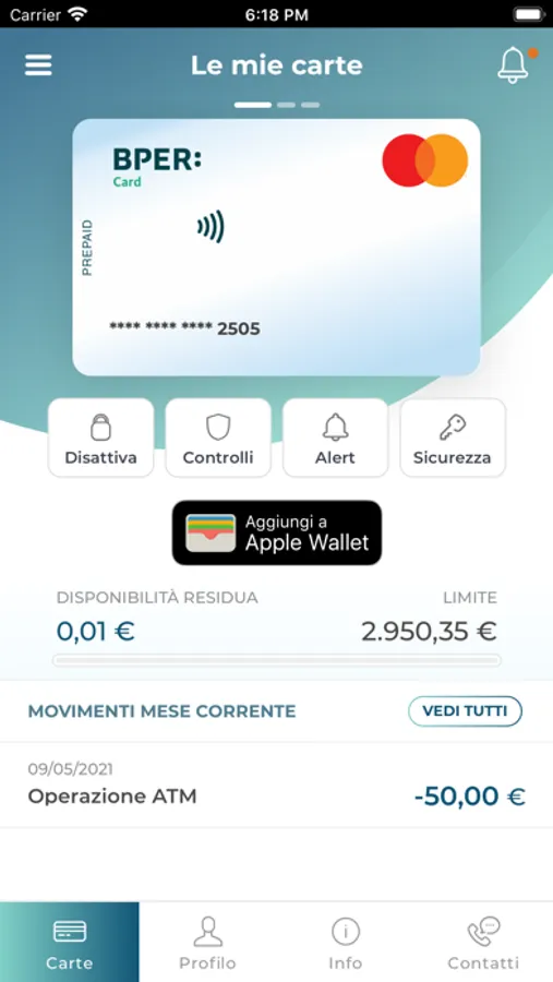 Hai smarrito la carta? Puoi utilizzare la funzione “Disattiva” per disabilitare temporaneamente le operazioni fino a quando non l’hai ritrovata.