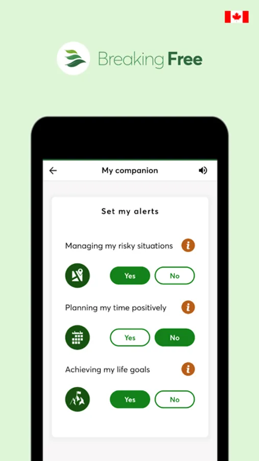 Companion app for use by people with an account on the Canadian Breaking Free Online recovery program ie. www.breakingfreeonline.ca