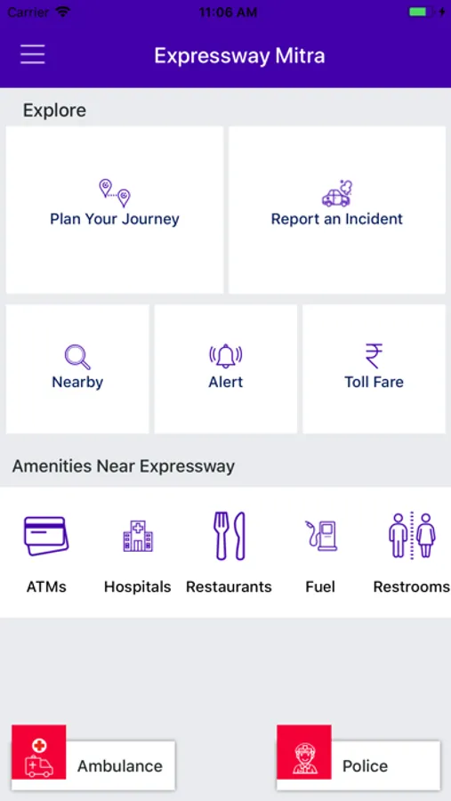 A commuter can get the details about the nearest ATM, hospitals, restaurants, police stations, toll plazas, workshop etc. from their location on the expressway. User can select and find route to any of the options available.
