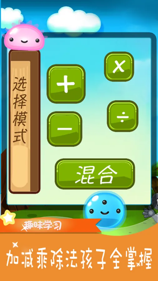独创的孩子学习数学小游戏,有加法、减法、乘法、除法和混合算术。