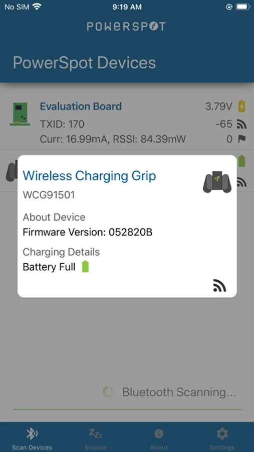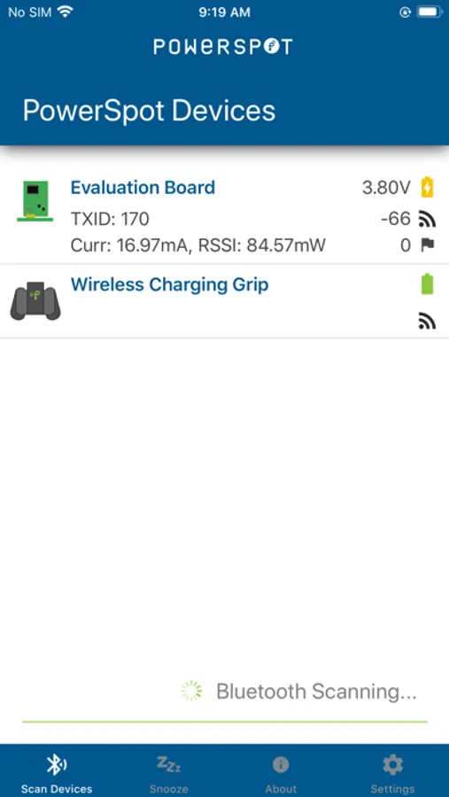 The PowerSpot app is your hub for monitoring the wireless charging status of your Wireless Charging Grip and other Powercast-enabled devices. Simply place your enabled device in front of a PowerSpot RF wireless power transmitter and monitor its status using this app.