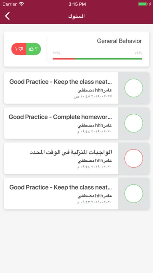 • عرض السلوكيات المسجلة من قبل المعلمين المختلفين ومتابعة حالات الحضور المختلفة