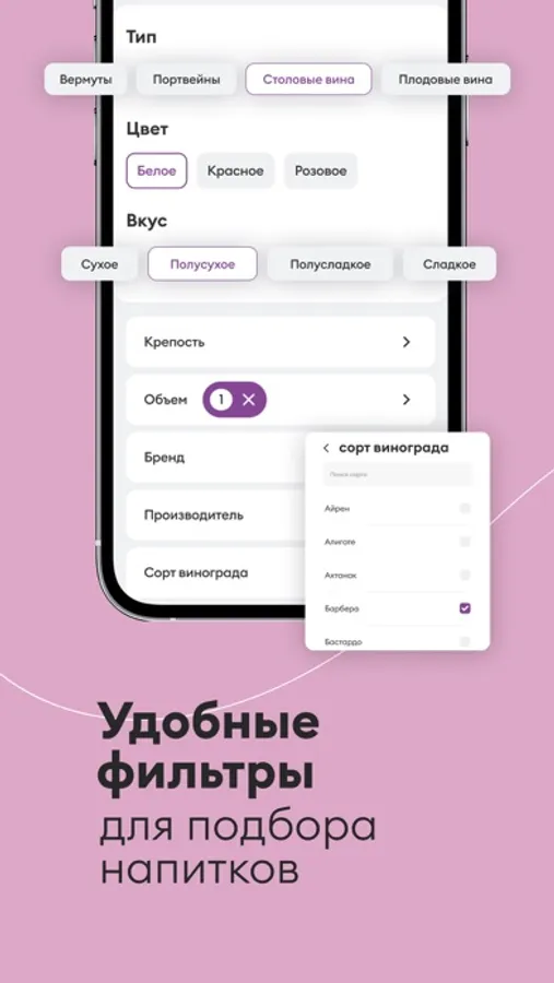Предназначено для лиц старше 18 лет. Данный материал носит исключительно информационный характер и не является рекламой спиртных напитков. Мобильное приложение предусматривает возможность оформления заказа, купить алкоголь вы можете исключительно в магазинах сети Винлаб.