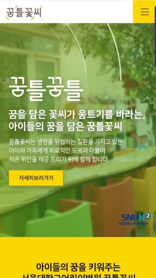 서울대학교 어린이병원 꿈틀꽃씨(소아완화의료)앱은 무료입니다. 꿈틀꽃씨 어플리케이션을 통해 이벤트프로그램, 보호자이벤트, 청소년프로그램, 교육프로그램 등 쉼터의 다양한 프로그램 예약이 가능하며 예약완료시 문자메세지가 발송됩니다.