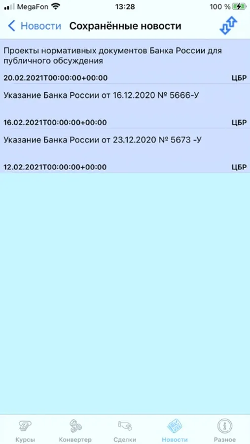 For operational tracking of information of the Central Bank of the Russian Federation, there is a Central Bank news feed. It is also possible to save important news for you in a separate folder so as not to forget them, as is often the case in a large stream of information. This option may be of interest to bank lawyers.