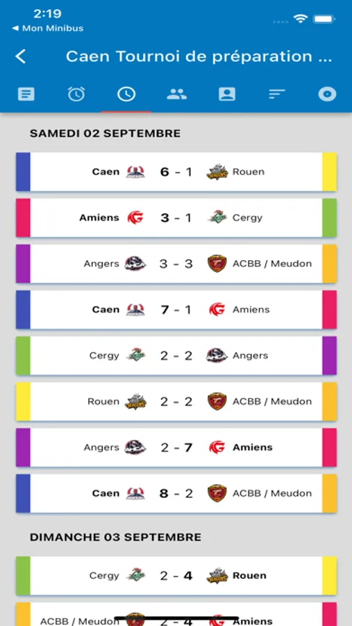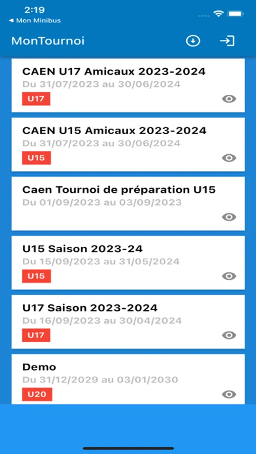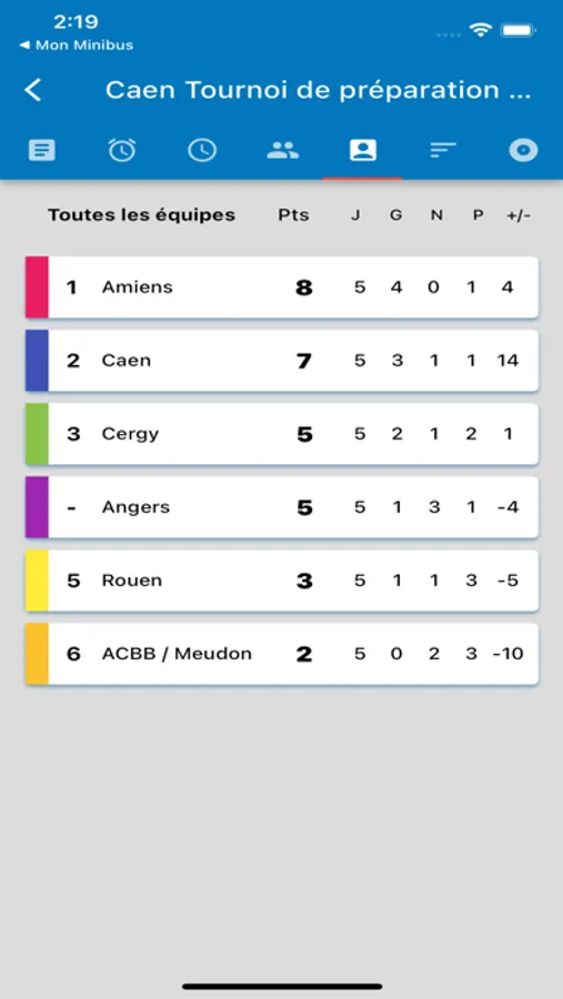 - Calendrier des tournois.