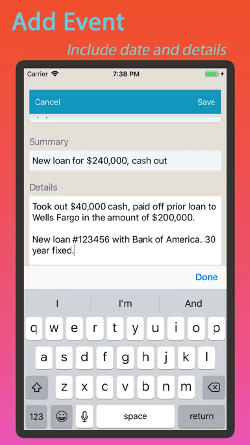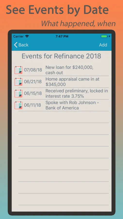 Easily find the answer to "what did my dentist do on my last visit?", "when did I get those new tires?" "Is my Blendtec still under warranty"? "Which dealership did we get the car stereo fixed?". "When was my last raise?". Or, track an ongoing conversation with a service representative. Disputes spanning days, weeks or months can be precisely noted and dated and referred to for future conversations. Be able to tell the representative who you last spoke, on what date, and what was discussed. The uses are endless!