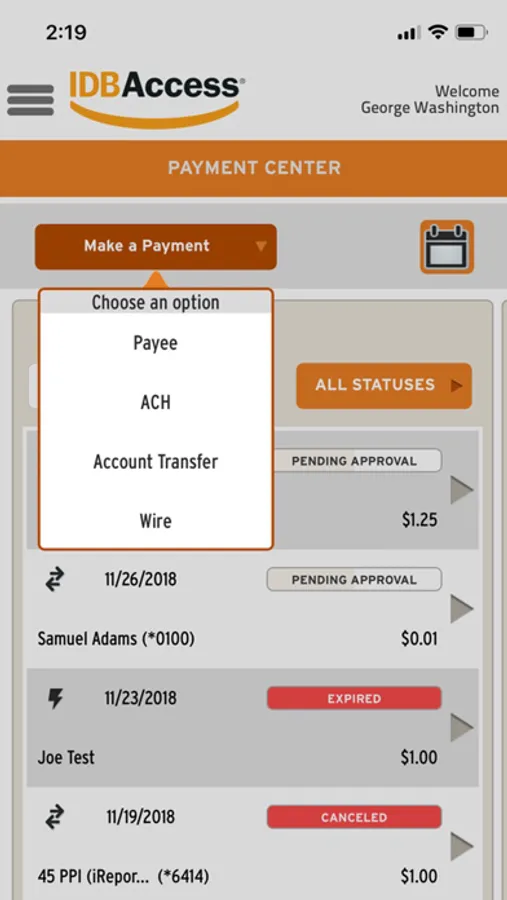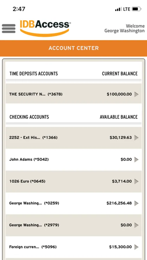IDBAccess Mobile App allows you to access the same data as you would if you were logged in through your computer. It's free to download and offers our private banking clients the ability to monitor account activity, stop checks, make deposits, and see secure messages. In addition, our corporate clients can make and approve payments and check positive pay exceptions. You must currently be a user of IDBAccess to use this application. To enroll in IDBAccess, please contact your Account Officer. Member FDIC.