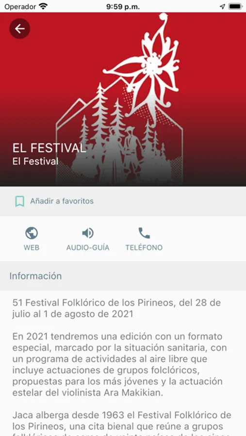 Accede a la información sobre el Festival Folklorico de los Pirineos y disfruta de la app sin necesidad de preguntar en cada esquina.