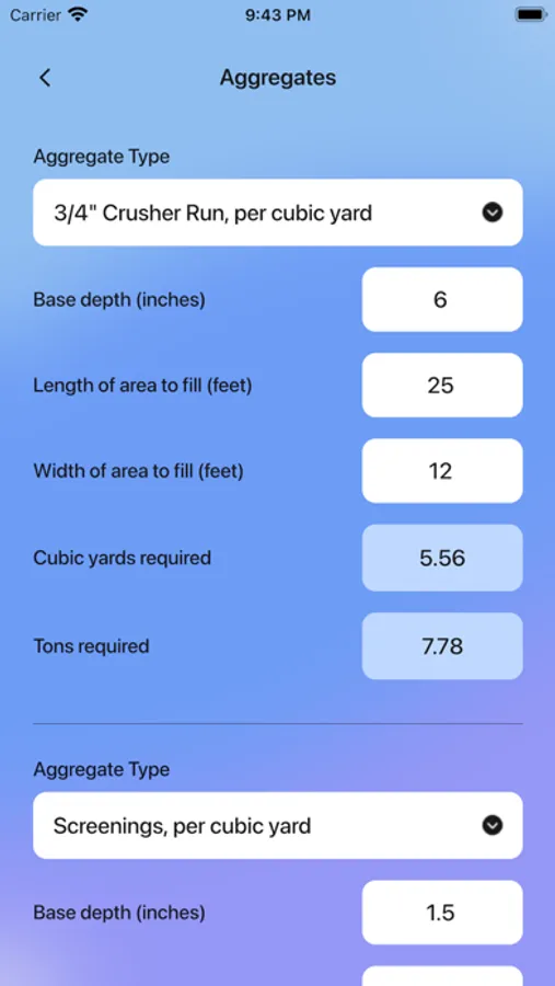 The app will help users with calculating area, quantities of aggregates, soil, mulch, sod, concrete for pours, concrete block, and natural stone. It also helps with calculating elevations and metric conversions. Once you are done, email results as a PDF for use by everyone on the team.
