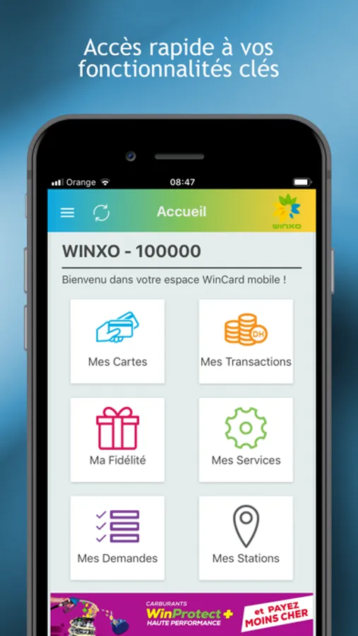 Winxo met à la disposition de tous les clients titulaires de la carte Wincard Gold et Wincard une application gratuite qui leur permet d’accéder aux données relatives à leurs cartes, à l’aide de leurs Smartphones. Les fonctionnalités de l’Application Mobile « Wincard » sont les suivantes: