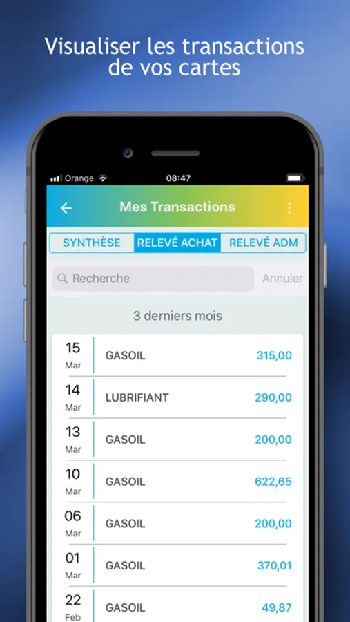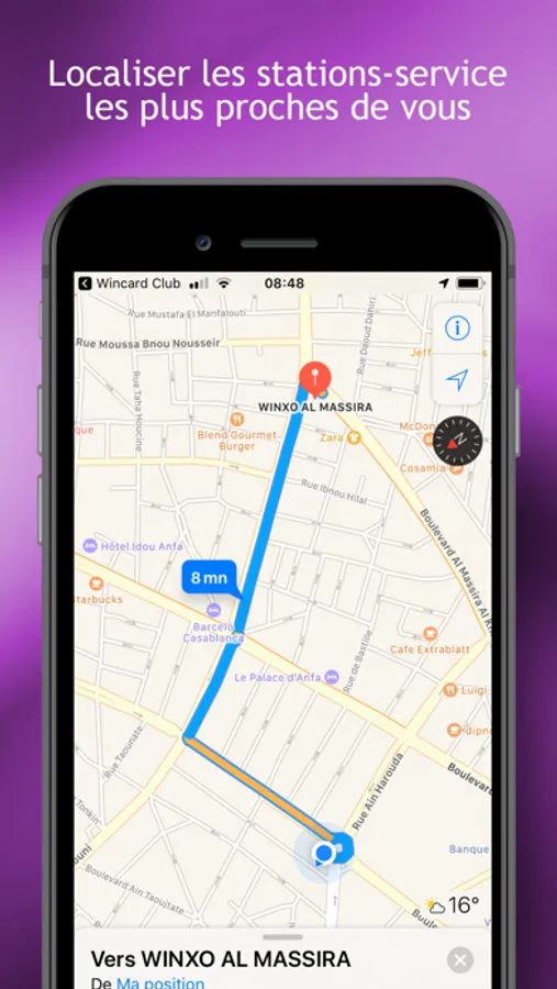 • Géo-localisation des stations-service dans un rayon de 50 km .