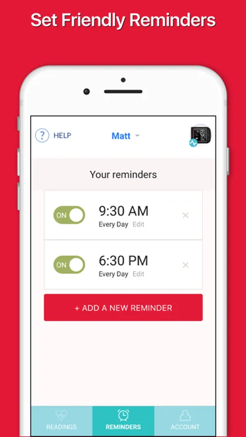 •Set reminders to take your blood pressure readings so you can stay accountable and track results.