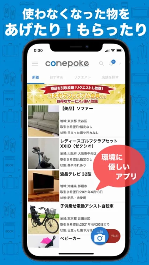 引取り手数料初回無料で、使わなくなった物をコネポケであげよう!もらおう!