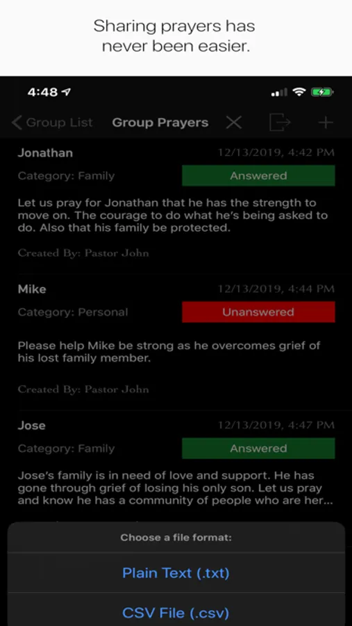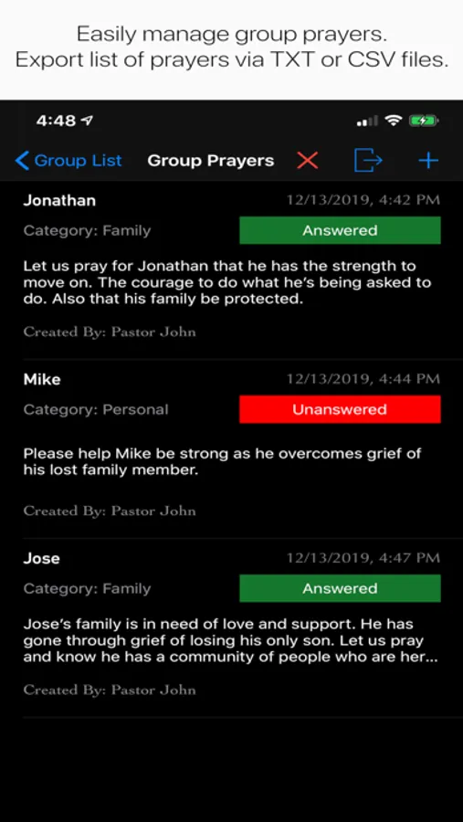 Prayer Request Notes is the best app available to help promote praying. This is not just a tool to individually pray and keep track of what you pray for but also to help share and inspire others to pray as well. The perfect solution for churches, group leaders, families, friends, and anyone else organizing and wanting to manage and share prayer lists.