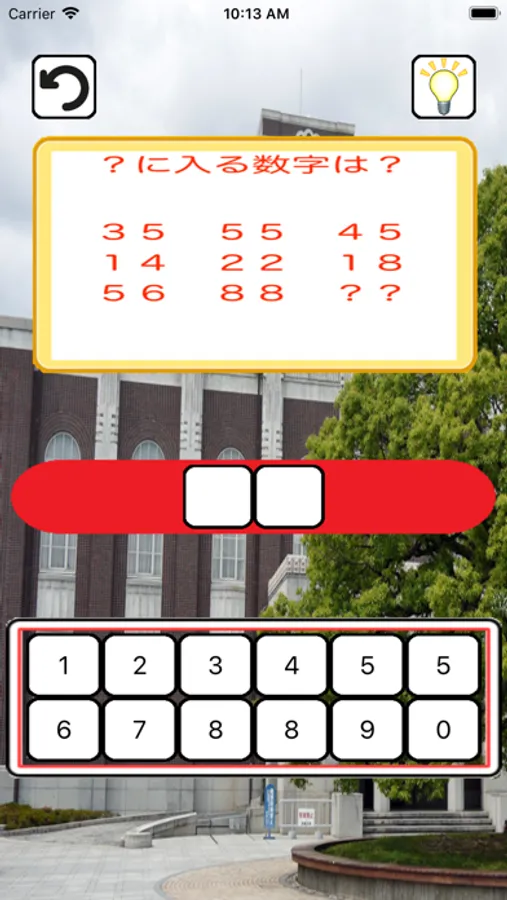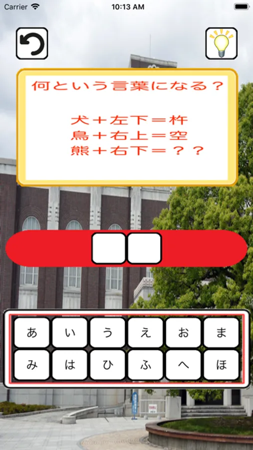 東大生が出す謎を解いていこう。上部に表示された問題を解いて、下部にある文字をタップしていこう。文字が全て埋まると合っているかどうかの判定が自動的にされます。入力ミスした場合は、答えの修正したい部分をタップすると入力を修正することができます。分からなければ右上にあるヒントボタンを押すとヒントが表示されます。それでも分からなければヒントボタンの横にある降参ボタンをタップしましょう。
