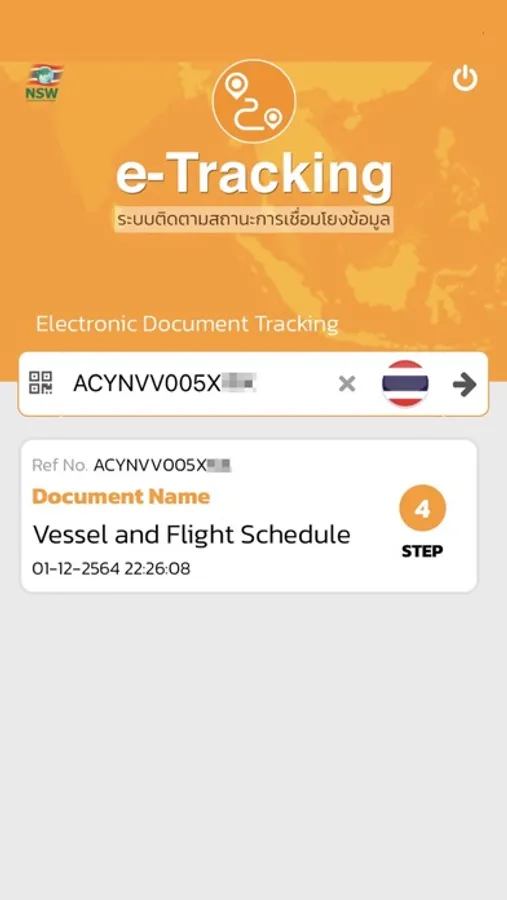 Tracking system for data transmission, importers, exporters, logistics in Thailand on Mobile Application (NSW e-Tracking) provides self-service for exporters / importers to track the status of messages transferred through Thailand National Single Window System. The system requests for camera access to scan the QR code of the reference number because that number is long. Registration information for system notifications and user support only.
