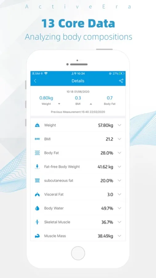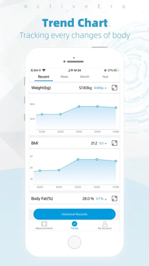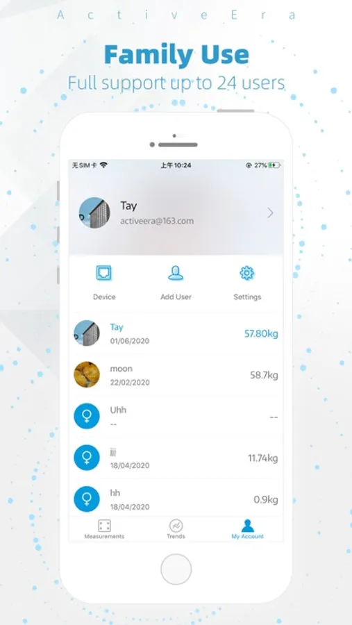 Sync the Active Era app with your Active Era Smart Scales for a complete body composition insight. Monitor your essential measurements including weight, BMI, body fat, body water, bone mass, protein percentage and more. Track your progress over time with easy-to-read charts, view trends and make improvements to achieve your goals. Easily share your data with a friend or personal trainer via email or your favourite messaging app. Add up to 24 user profiles per app account.