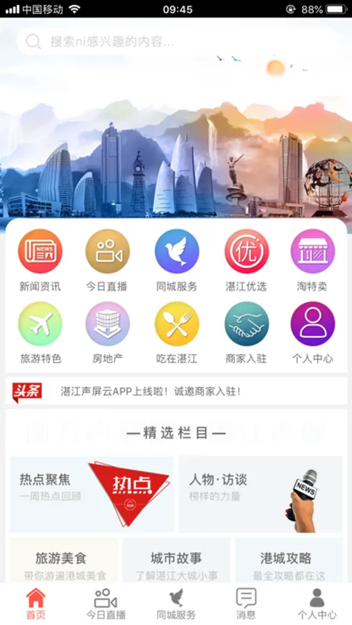 湛江声屏云是一款同城门户类手机应用软件。以新闻资讯、社交娱乐、生活服务、政务服务为一体的具有广播电视特色的无线应用客户端。为湛江市民提供直播节目、各种与百姓生活相关的服务实用信息和便民服务。