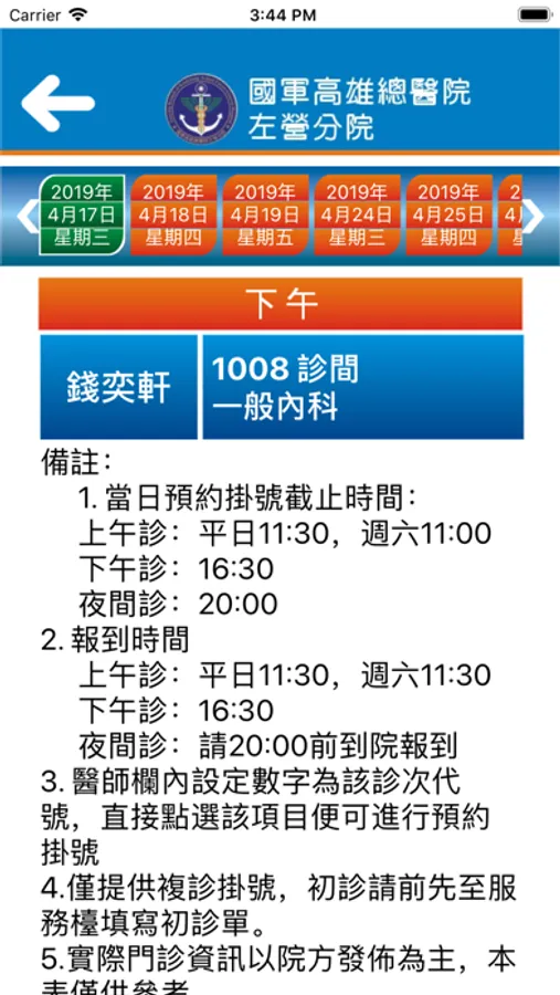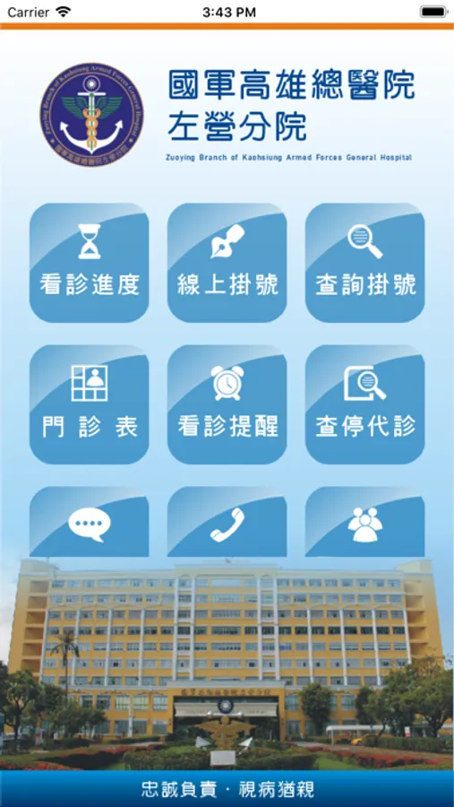 安裝國軍左營分院APP「行動資訊服務系統」,讓您隨時隨地一手掌握就診資訊,包括看診進度、看診提醒、行動掛號、門診表、停代診資訊、最新消息、醫療團隊介紹、交通資訊、電話快撥等服務,歡迎民眾踴躍下載使用。我們也將不定期提供系統功能升級與更新版本。