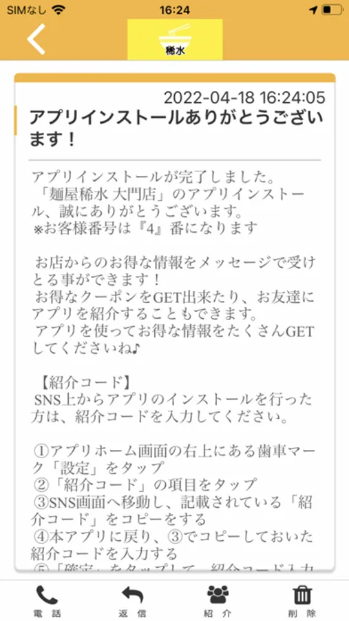 らーめん稀水のアプリをSNSを通じてお友達に紹介する事ができます。