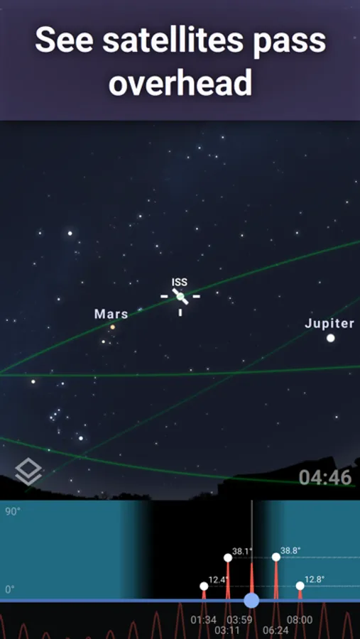 Identify stars, constellations, planets, comets, satellites (such as the ISS), and other deep sky objects in real time in the sky above you in just a few seconds, just by pointing the phone at the sky!