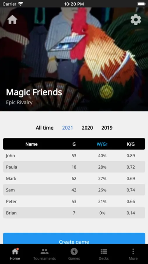 - Create a guild for you and your friends to track ad hoc games. Guilds provide ranking of its members and a summary of all games played within the guild.
