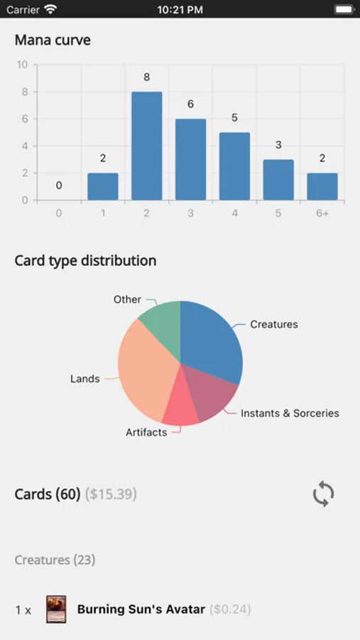 - Card data is synchronised with the Scryfall DB, so prices can be updated daily.