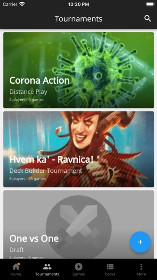 - You can also create tournaments, for sessions within or outside your guild. Players will be invited, but don't need to create an account to participate.