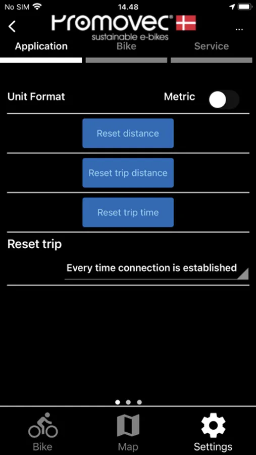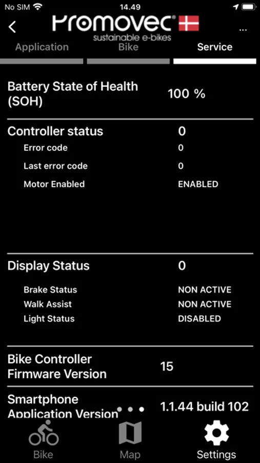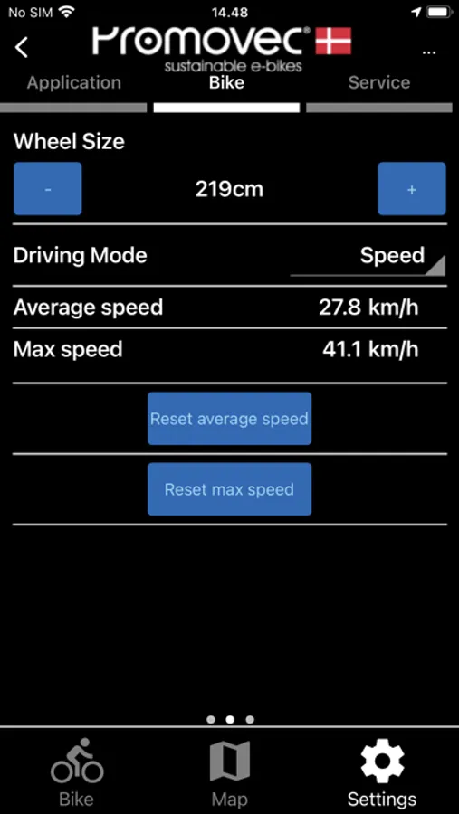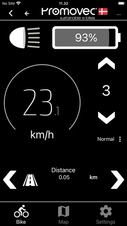 Communicate with any ebike equipped with Promovec's Connect+ display via Bluetooth. All relevant information is at your fingertip; speed, battery health and capacity, trip details, and details for servicing the ebike.