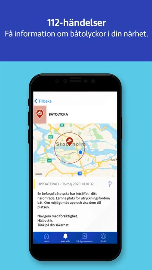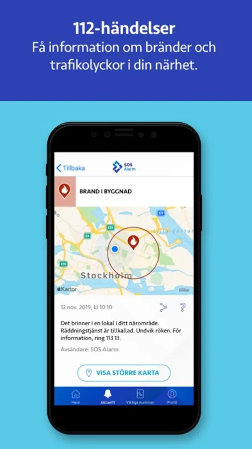 · Call 112 - your position is then sent to SOS Alarm, which makes it easier for help to arrive at the right place quickly.
