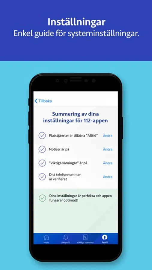 In order to fully use the 112-app and to take advantage of all its features, it is important that you register your phone number and approve location services and permission to send push notifications, etc.