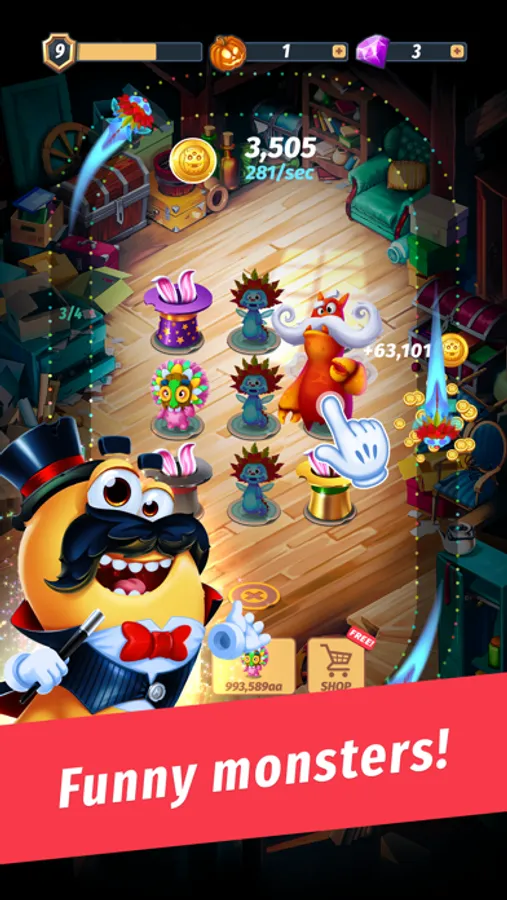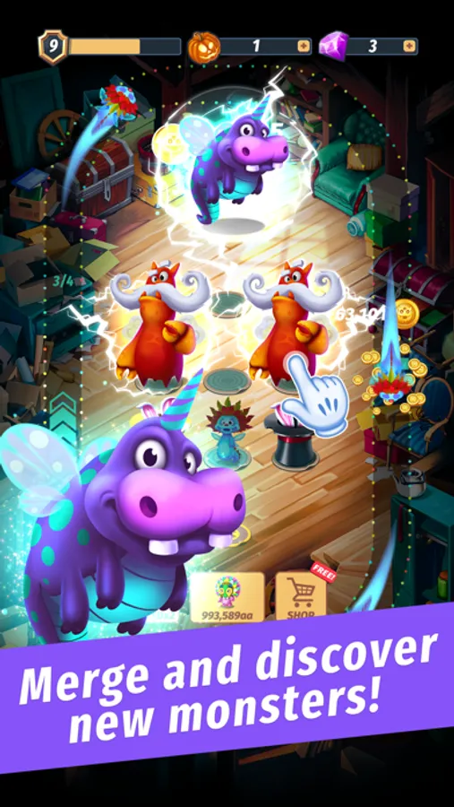 Come to play the most addictive game on your phone! Choose the smartest strategy to be the first to collect all the monsters. Upgrade your monsters and earn gold. There are more than 50 kinds of unique monsters in the game. The monsters can fly on their own so you can get gold even when you are offline. Gather the whole Monster Collection and rule the your domain!