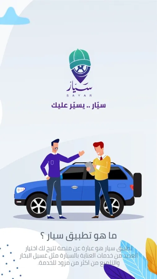 هل تعبت من البحث عن مغسلة او شركة لغسيل سيارتك؟ سيار هو تطبيق رائد يجمع مزودي خدمة غسيل وتلميع السيارات المتنقلة في مكان واحد حيث تزورك السيارة مباشرة في مكانك سواء كان منزلك أو عملك في جميع إرجاء مدن المملكة العربية السعودية.