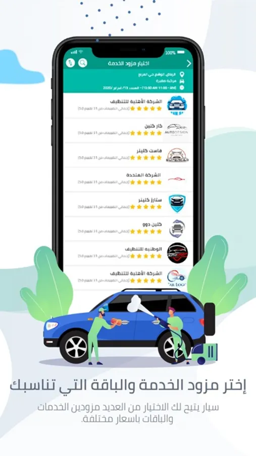 هو تطبيق يربط مقدمي الخدمات المتنقلة مع العملاء في مكان واحد ويتيح للعملاء اختيار خدمات العناية بالسيارة المتنوعة بأسعار مختلفة لتنفيذها في الوقت والمكان الذي يناسبهم نحن محترفون جديرون بالثقة يدعمهم فريقنا لضمان الجودة في الموقع.