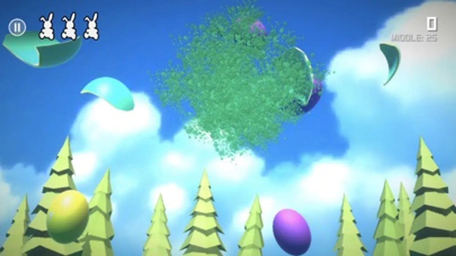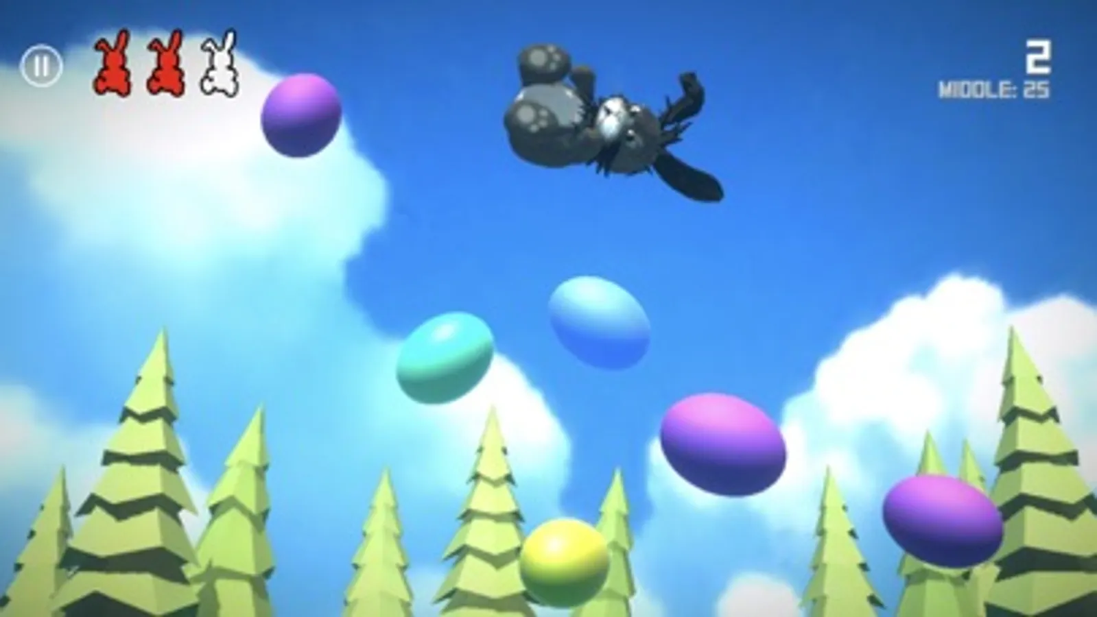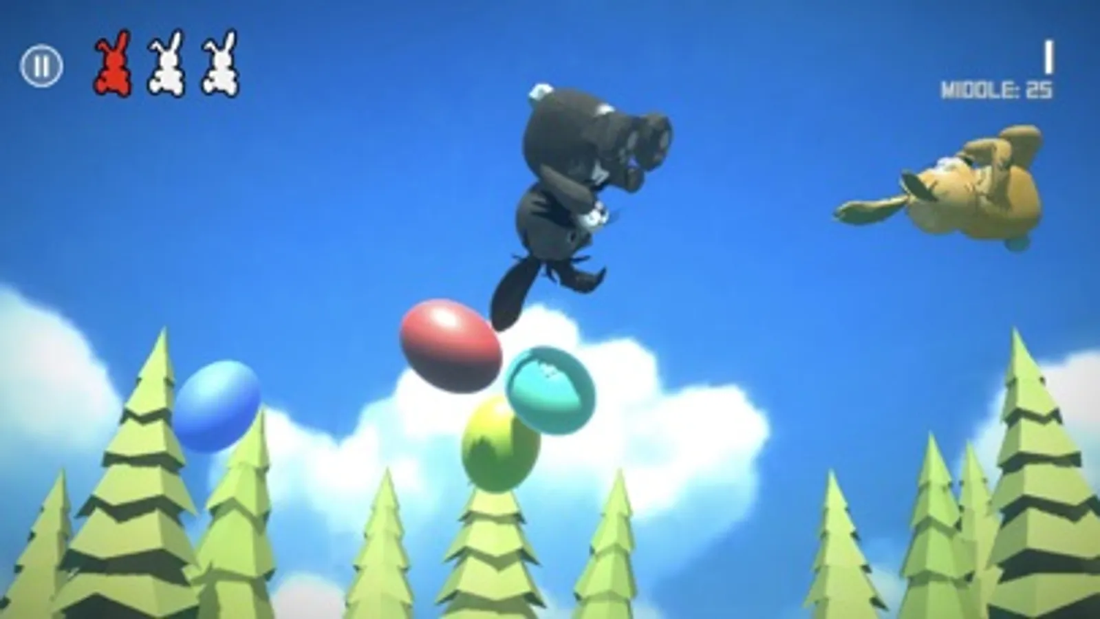 In BunnyCrush the bunnies are on the loose. In this fast-paced game, you do not have much time to hit the evil black bunny. If you miss the bad bunny three times the game is over and you are ready for another round, full of flying eggs and bunnies. Watch out do not hit the dear brown rabbit, otherwise you lose a point. If you hit an egg, it will burst and block the view a couple of seconds, making it harder to hit the evil bunny.