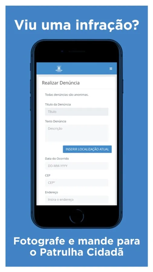 Agora você é o fiscal, com o Patrulha Cidadã você ajuda a fiscalizar o transito e a sua cidade, viu uma infração, denuncie sua identidade permanecerá anonima!