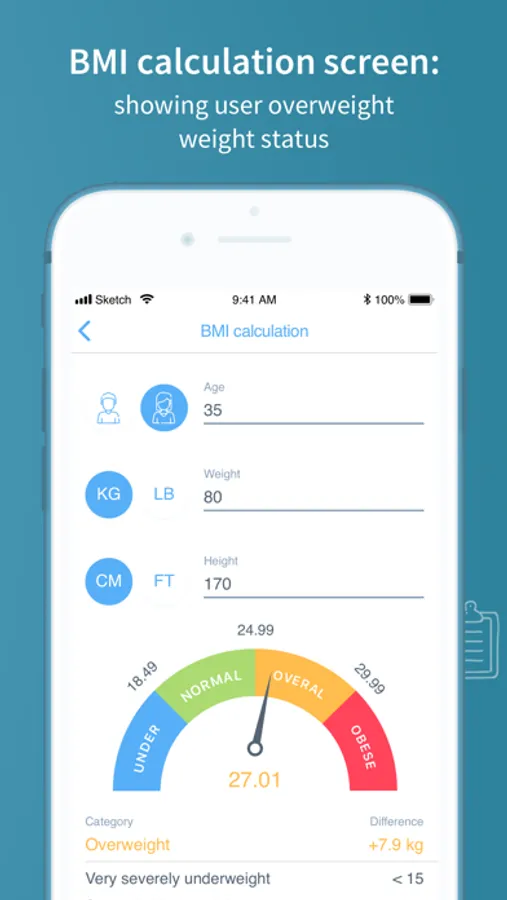 Accurate results: The Your BMI app calculates the BMI and your ideal body weight based on your weight and height.