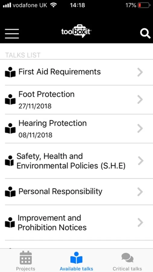 The Toolboxit App is the only app currently available in the UK that is based solely for the UK Fleet industry. It allows all companies from painters, plumbers right through to general contractors to easily carry out toolbox talks on a daily basis on all your project sites